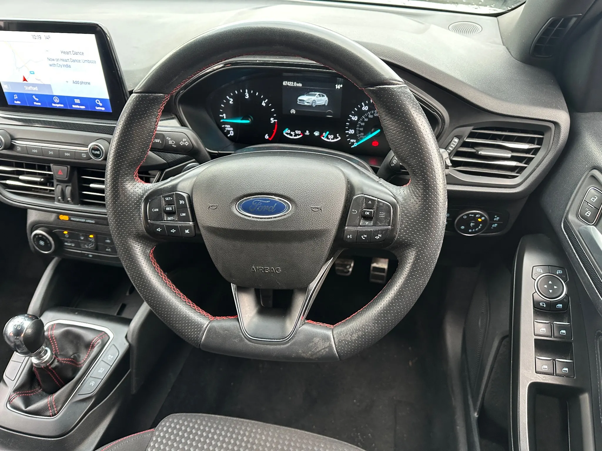 Inside, you'll find the Ford SYNC 3 DAB Radio system, complete with a vibrant 6.5 inch touchscreen that seamlessly integrates with both Android Auto and Apple CarPlay, keeping you connected and entertained on every journey. For added convenience, manual air conditioning ensures a comfortable cabin temperature, while automatic headlights adapt to changing light conditions. The inclusion of the Ford SYNC 3 DAB Navigation System further enhances your travel, providing clear directions and Bluetooth connectivity for hands free calls. These features collectively demonstrate the Focus ST Line's superior comfort and technological advancement compared to other vehicles in its class.
