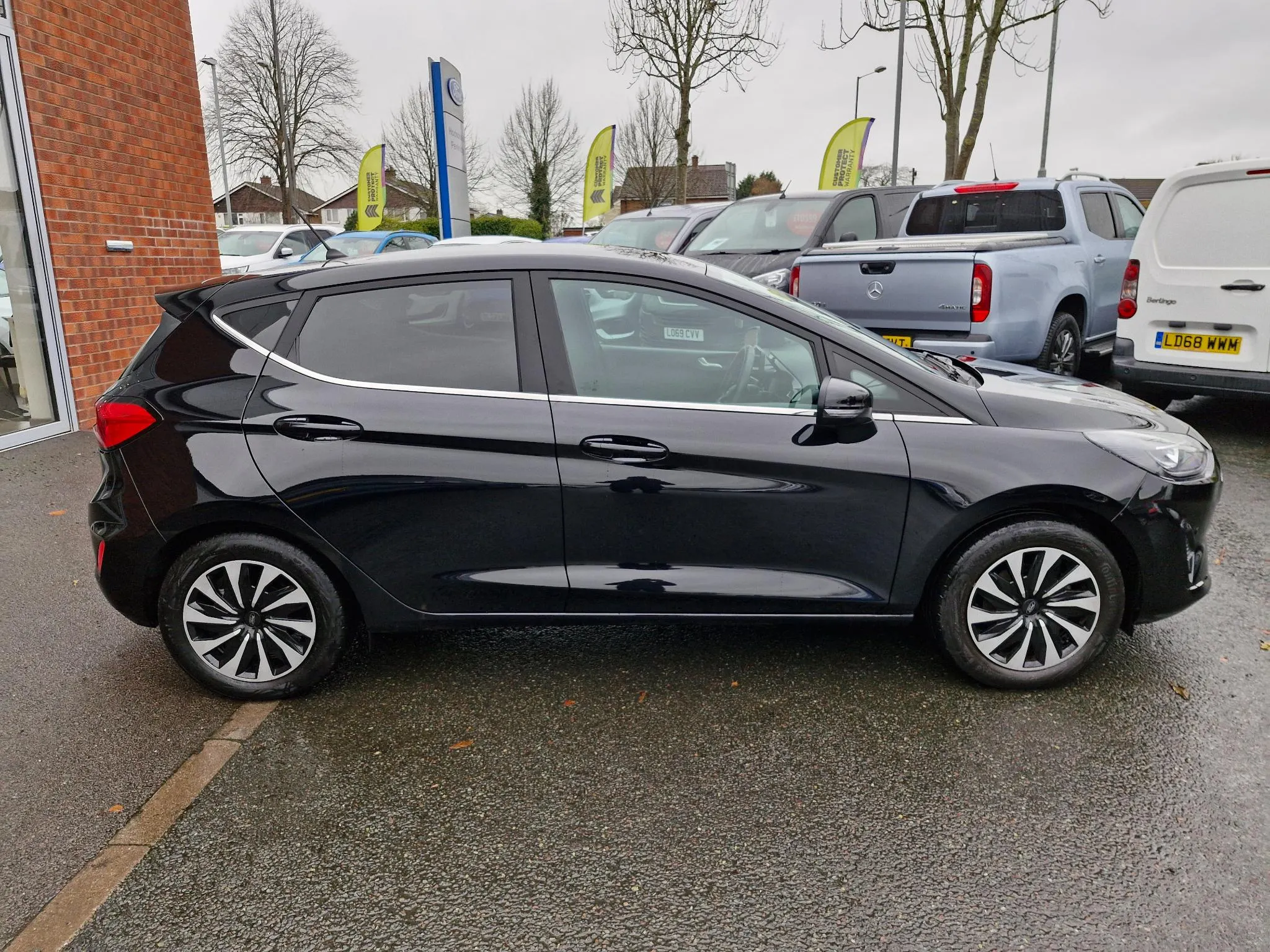 This 2023 Ford Fiesta T Titanium offers a superb blend of style and practicality, making it an excellent choice for any driver. Powered by an efficient 1.0 litre petrol engine and meeting Euro 6 emissions standards, this model is designed for modern driving. It comes equipped with manual air conditioning to keep you comfortable in all conditions, and striking LED headlights with integrated daytime running lights and fog lights for enhanced visibility. Manoeuvring is made easier with rear parking distance sensors, and you can stay connected and entertained thanks to the Ford SYNC2.5 system, which seamlessly integrates with Android Auto and Apple CarPlay.